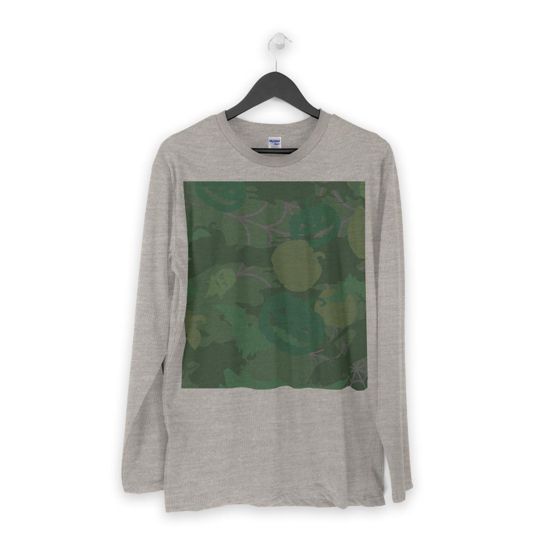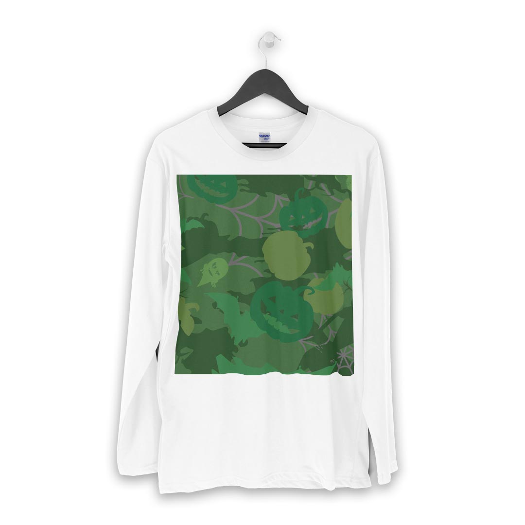 ロング tシャツ メンズ 長袖 ホワイト グレー デザイン XS S M L XL 2XL Tシャツ ティーシャツ T shirt long sleeve 008502 緑 グリーン ハロウィン カボチャ 模様