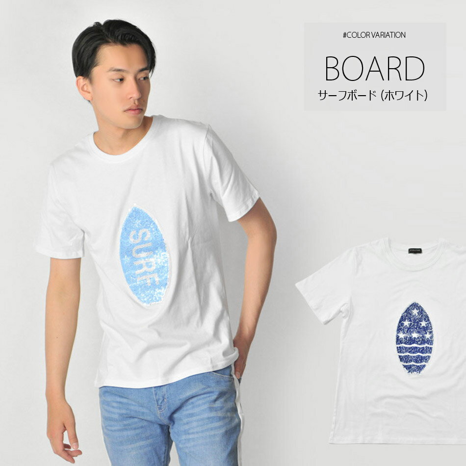 スパンコールを裏返せば『SURF』の英字ロゴと『星条旗』をモチーフにした2つのサーフ系デザインで、気分によってデザインを変えられるTシャツ。