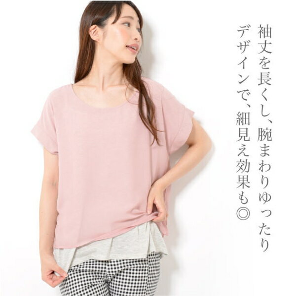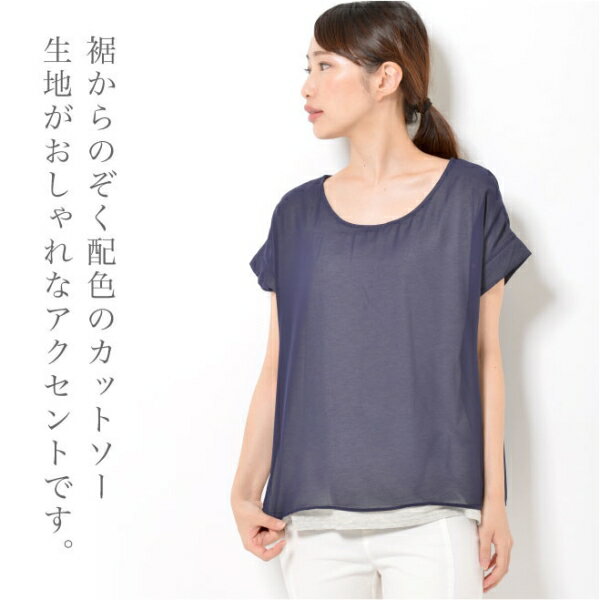 ブラウス M L LL 3L レディース トップス 半袖 裏カットソー 無地 [キャンセル・変更・返品不可]