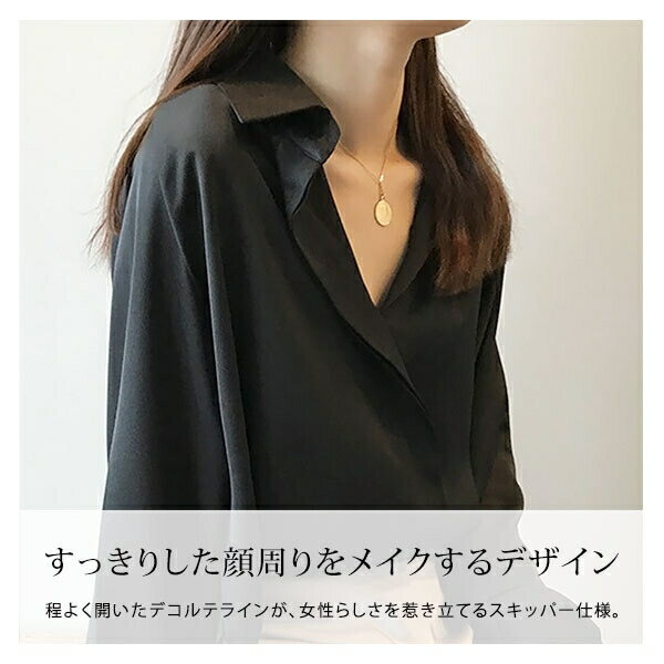 ヒップを覆う丈感で体型カバーも◎●品のある光沢が魅力的なサテン生地。